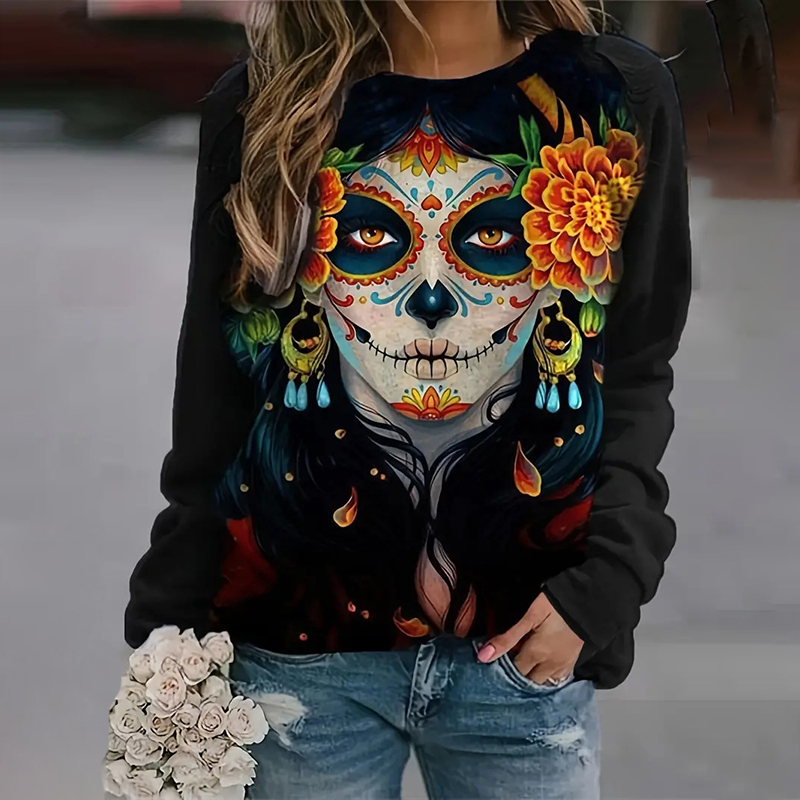Day Of The Dead Print Crew Neck Sweatshirt