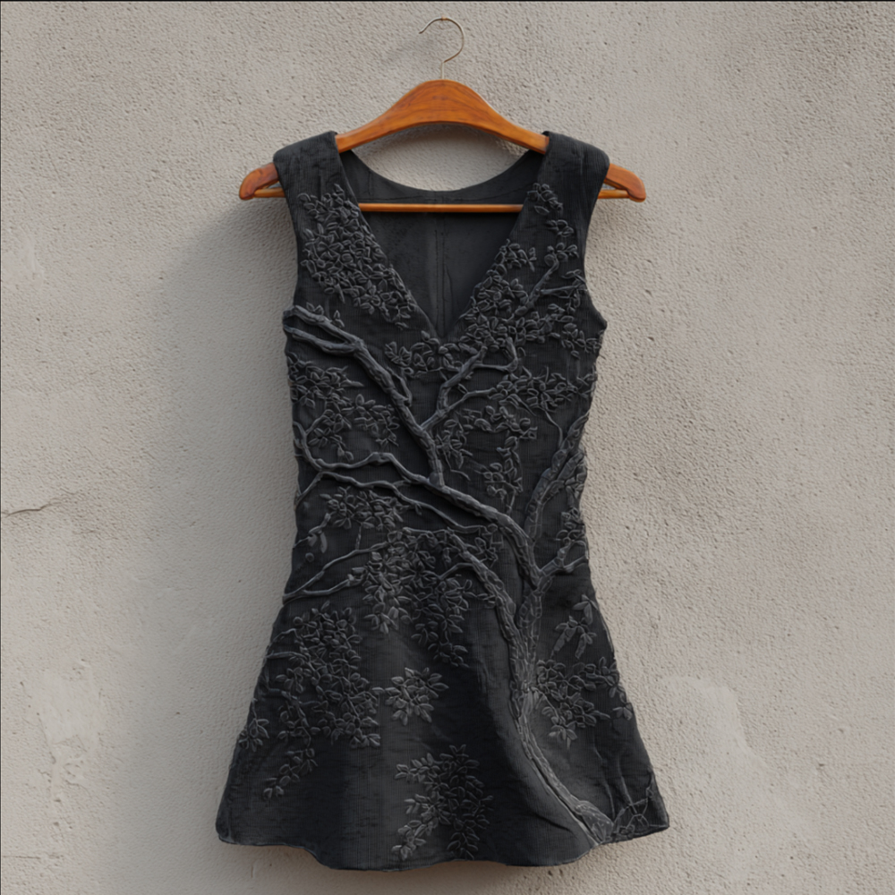 Forest Embroidery Sleeveless V-neck Long Dress