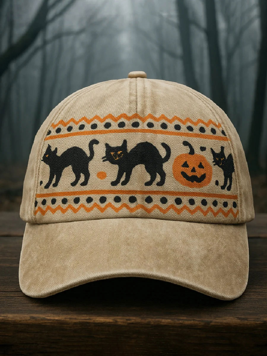 Halloween Black Cat Print Casual Unisex Hat