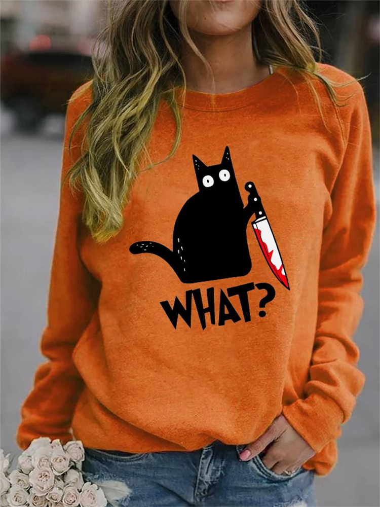 Halloween Black Cat With Bloody Knife Sweatshirt