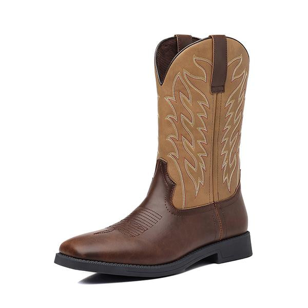 MEN'S EMBROIDERED VINTAGE WIDE TOE WESTERN BOOTS 14664325S
