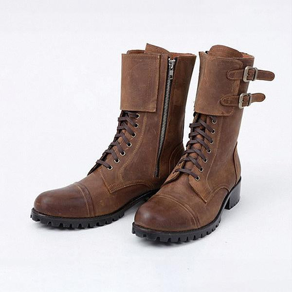 MEN'S RETRO BELT BUCKLE DECORATED LACE UP BOOTS 92575709S