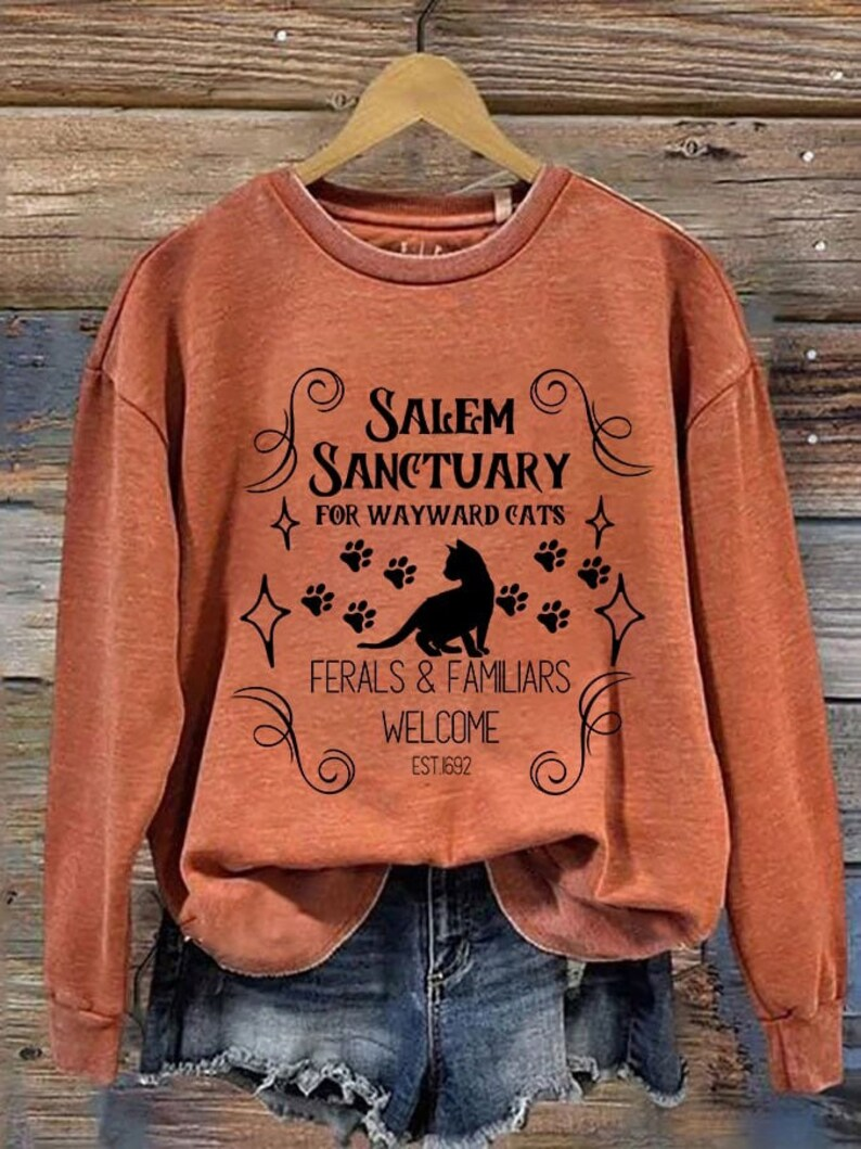 Salem Sanctuary For Wayward Cats Ferals & Familiars Elcome Est 1692 Halloween Sweatshirt