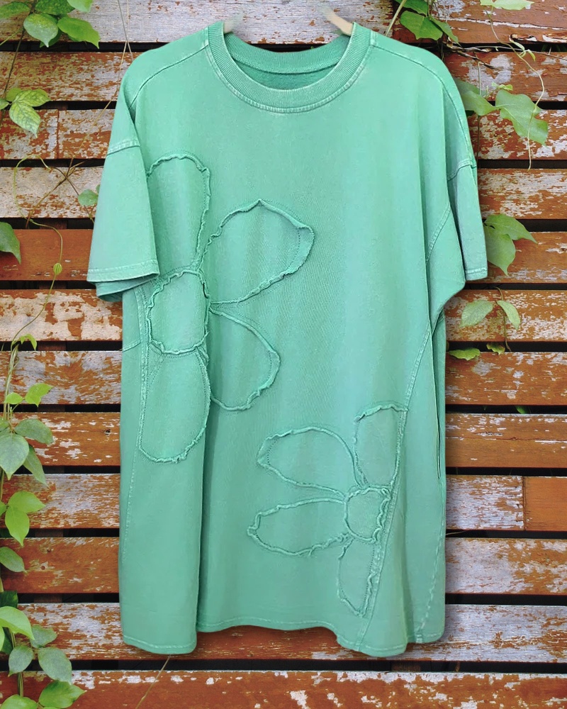 Solid Color Flower Applique Cozy Round Neck Mini Dress