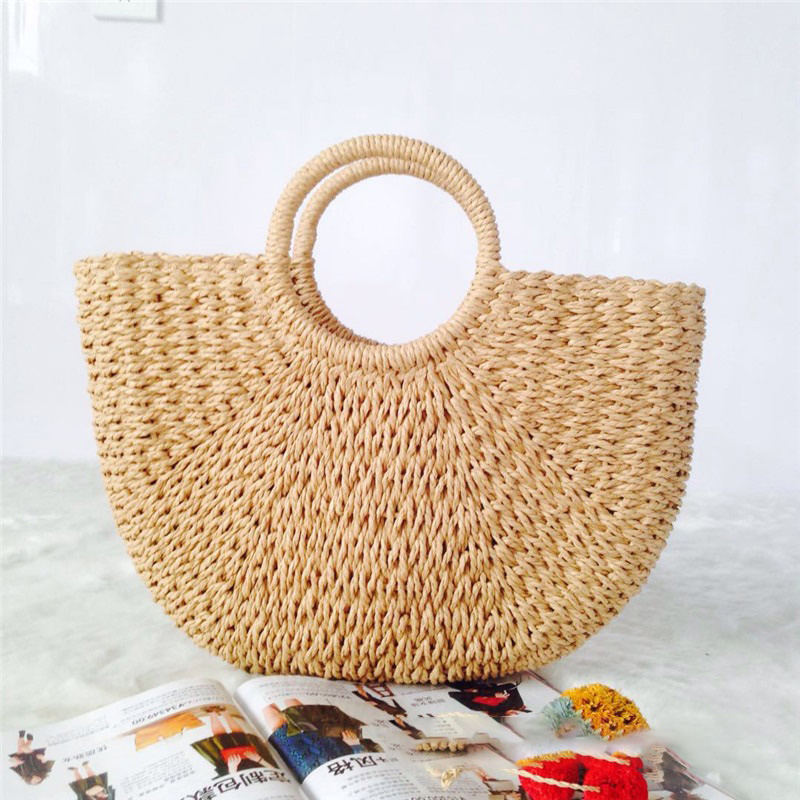 Straw Bag Versatile Women's Bag Casual Round Bucket Woven Straw Bag Vacation Beach Bag