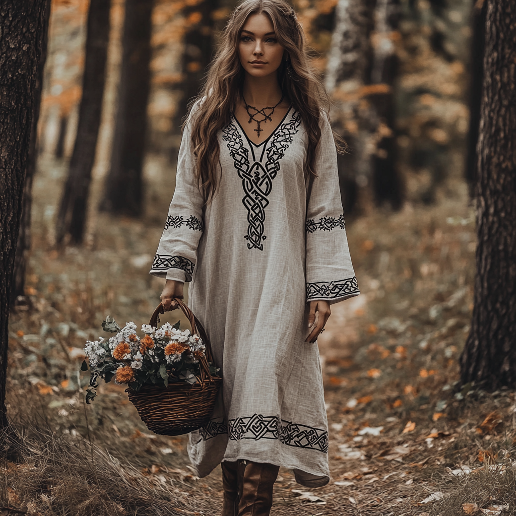 Vintage Viking Celtic Cotton Linen Maxi Dress