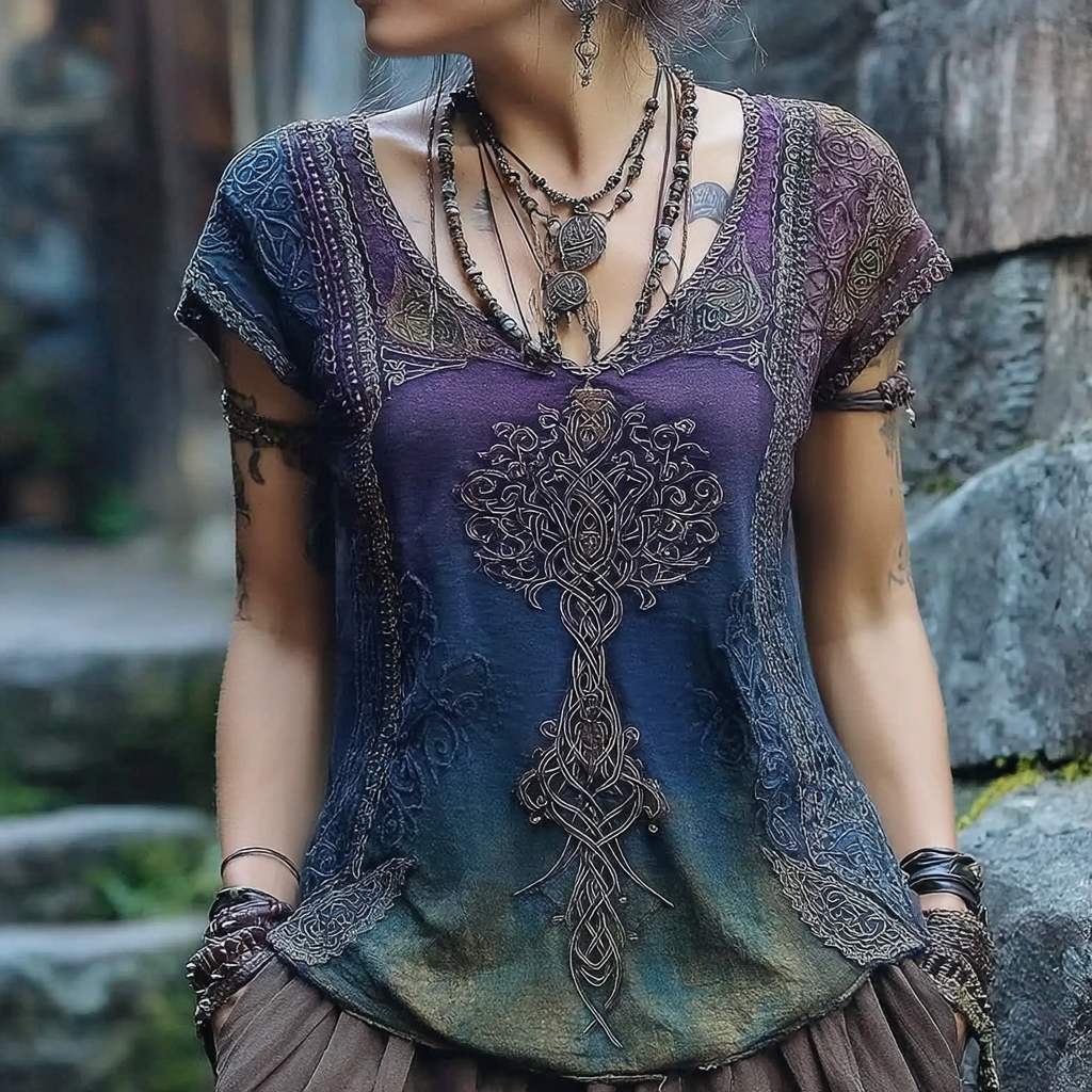 Vintage Viking Tree Of Life Gradient Art V-neck T-shirt