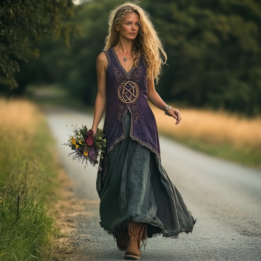 Vintage Viking Tribal Celtic Knot Patchwork Art Linen Tank Dress