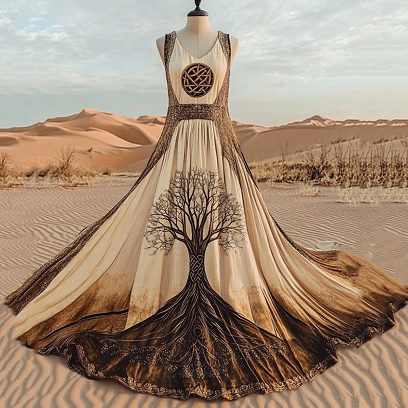 Vintage Women's Gradient Viking Linen V Neck Maxi Dress