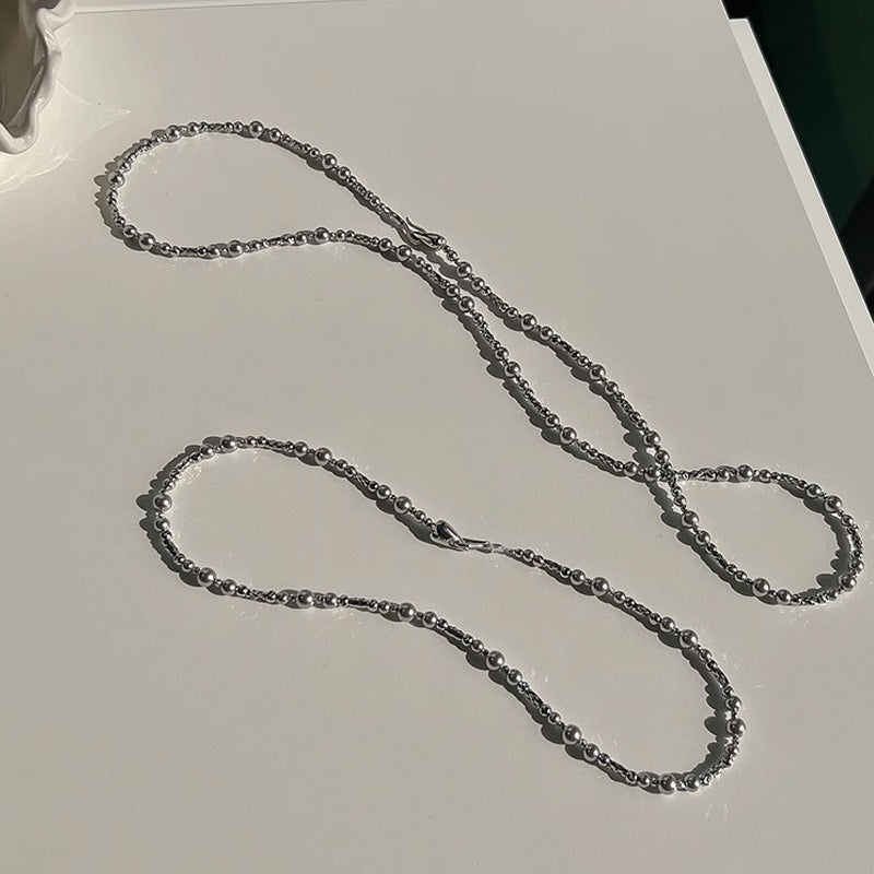 Women's Simple Silver Gray pearl Versatile Stacking Necklace
