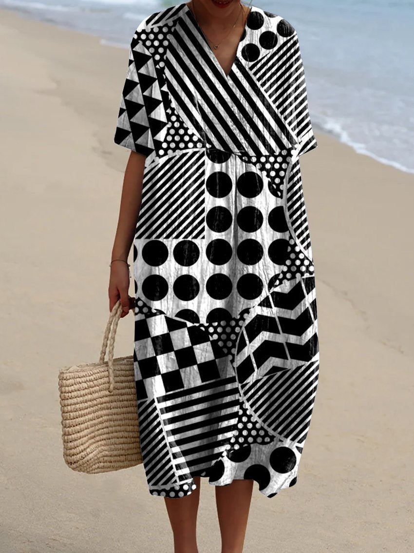 Women's Abstract Black and White Geometry Watercolor Splash Fluid Art Print Flowy Dress