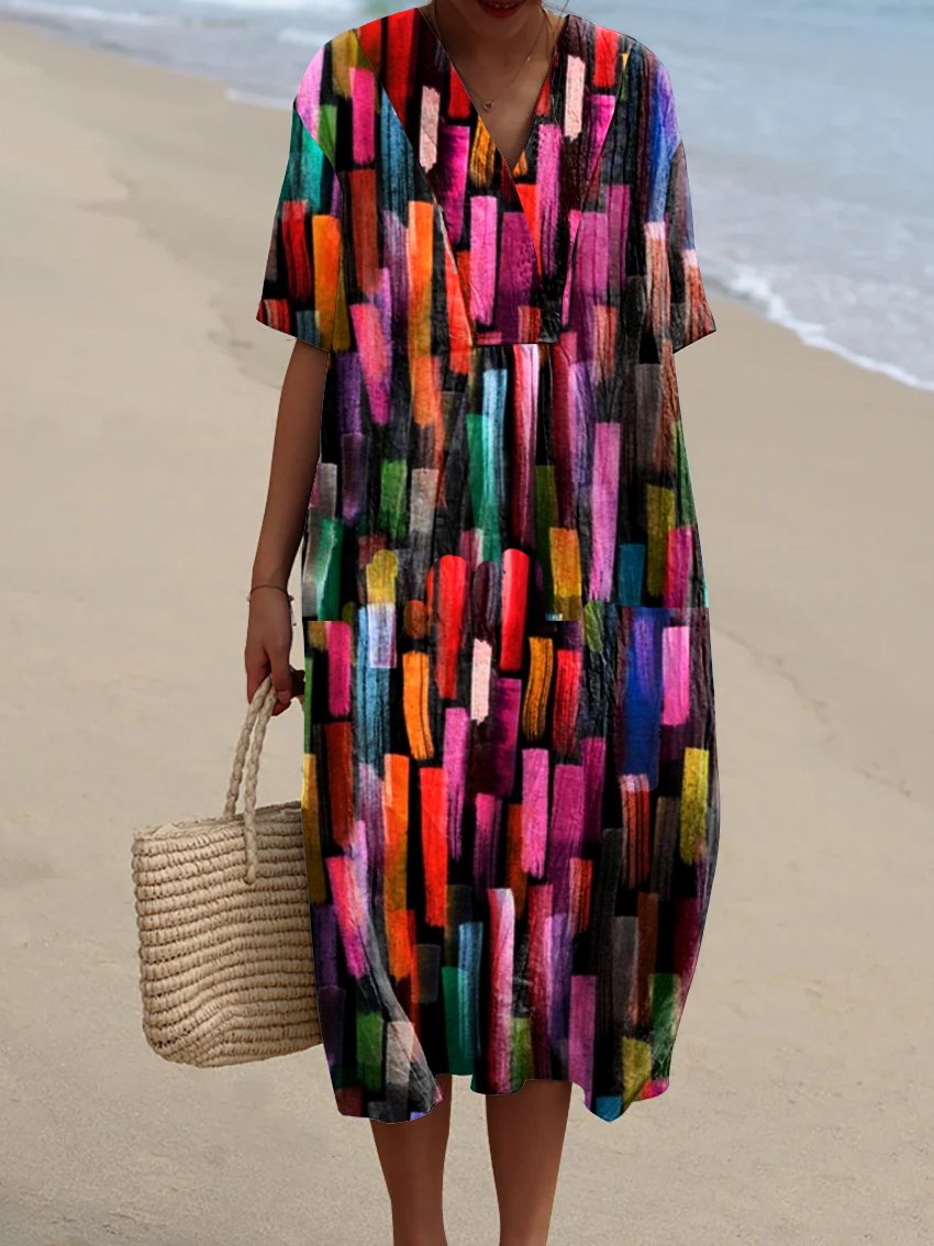 Women's Abstract Geometric Art Print Casual Flowy Dress