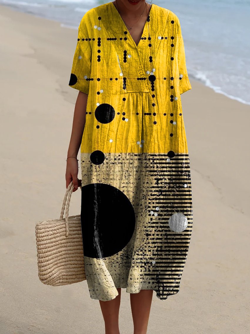 Women's Abstract Yellow Polka Dot Pattern Design Watercolor Splash Fluid Art Print Flowy Dress