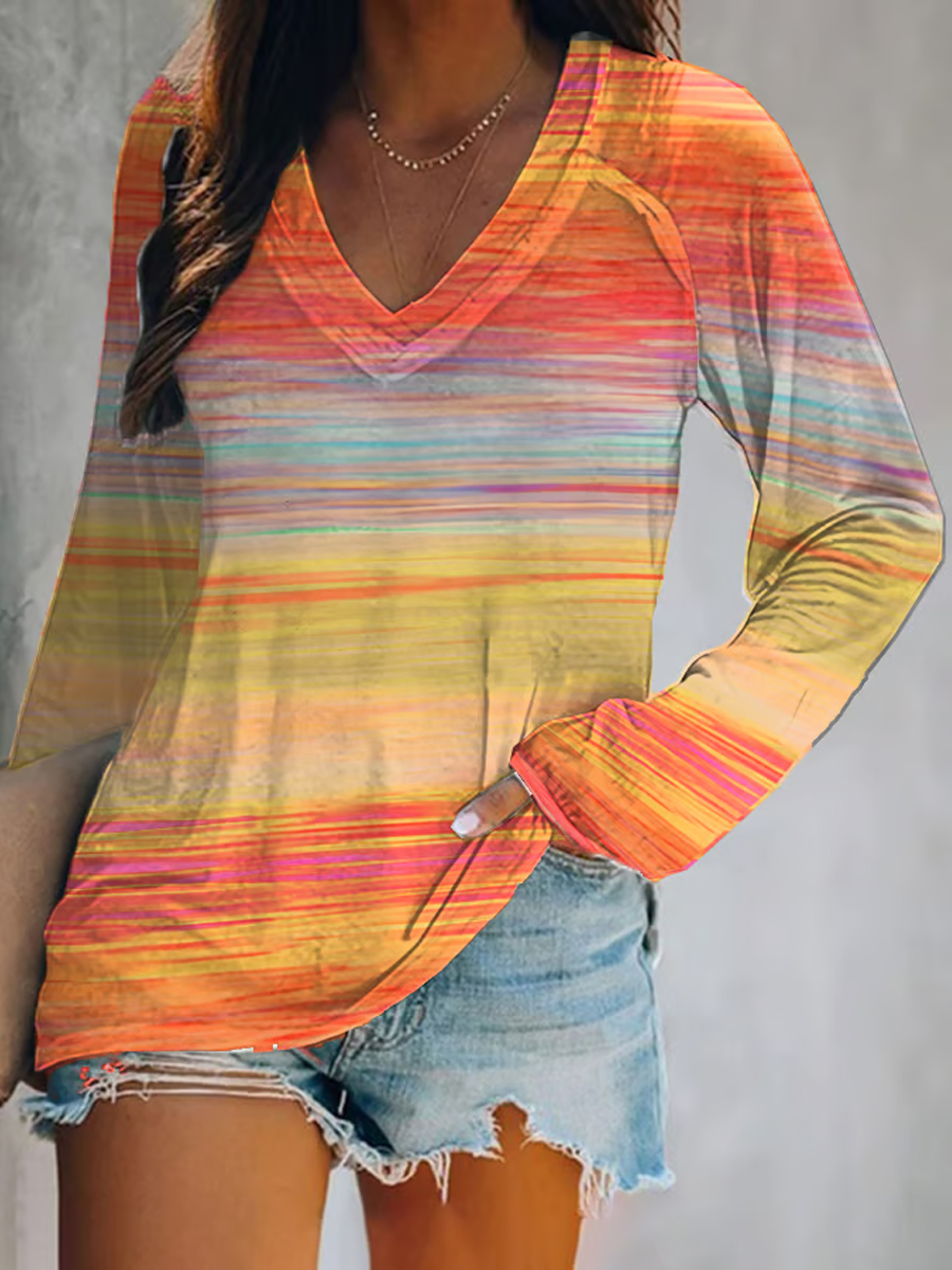 Women's Autumn Casual Gradient Double Layer Neck Long Sleeve T-Shirt