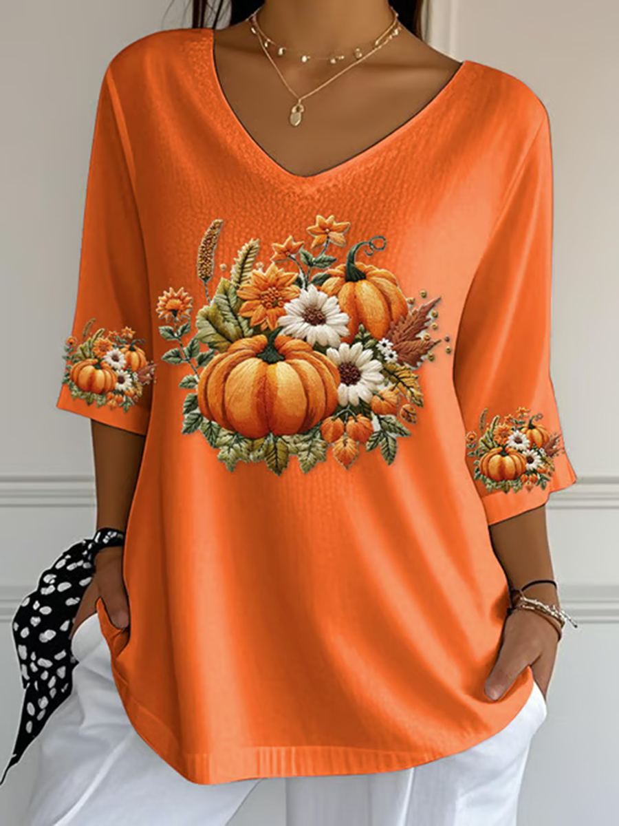 Women's Autumn Pumpkin Print Casual T-Shirt