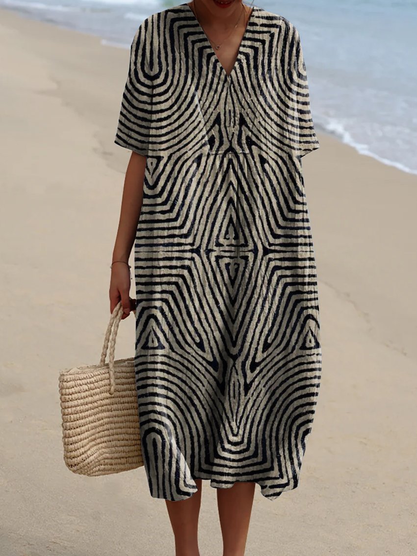 Women's Black and White Bohemian Ethnic Texture Watercolor Splash Fluid Art Print Flowy Dress