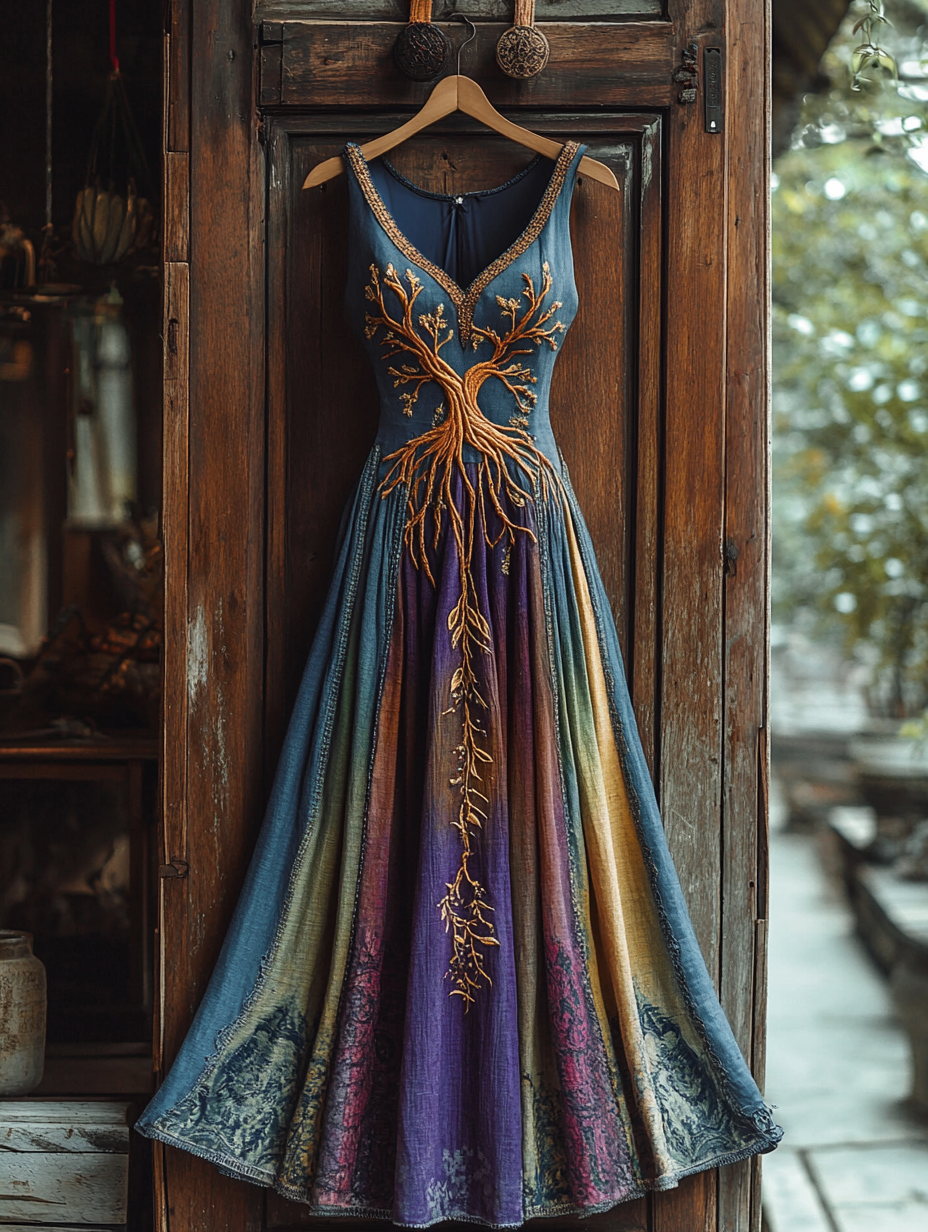 Women's Celtic Tree Of Life Gradient V-neck Maxi Dress