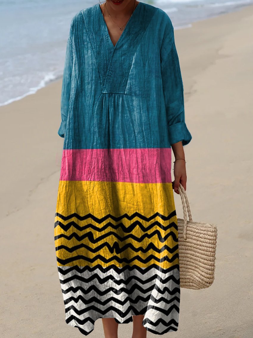 Women's Color-block Abstract Geometric Stripes Watercolor Splash Fluid Art Print Flowy Dress