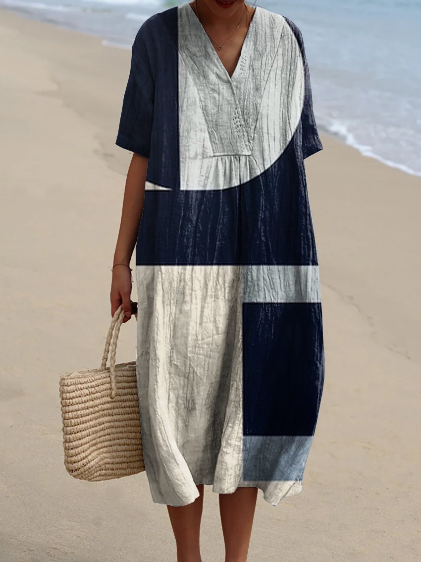 Women's Geometric Minimalist Dark Abstraction Watercolor Splash Fluid Art Print Flowy Dress