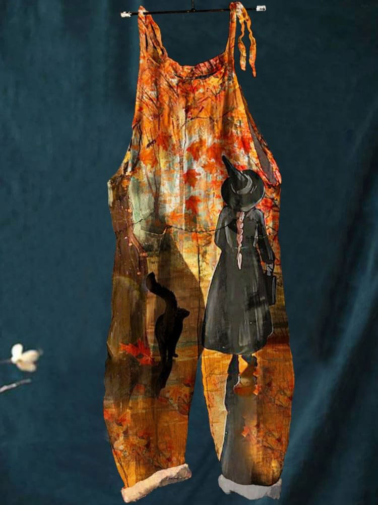 Women's Halloween Art Print Casual 100% Cotton Wide Leg Jumpsuit