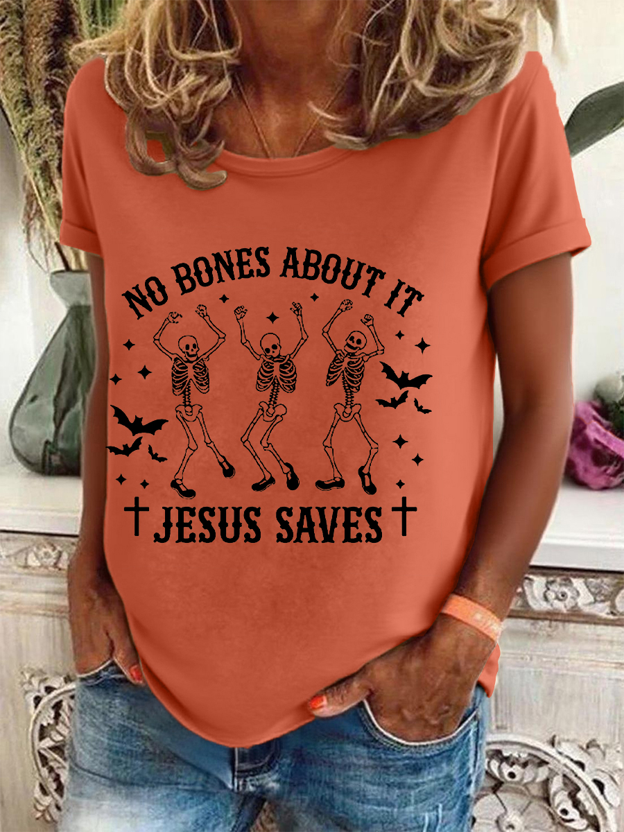 Women's Halloween Christian No Bones About It Jesus Saves Short Sleeve T-Shirt