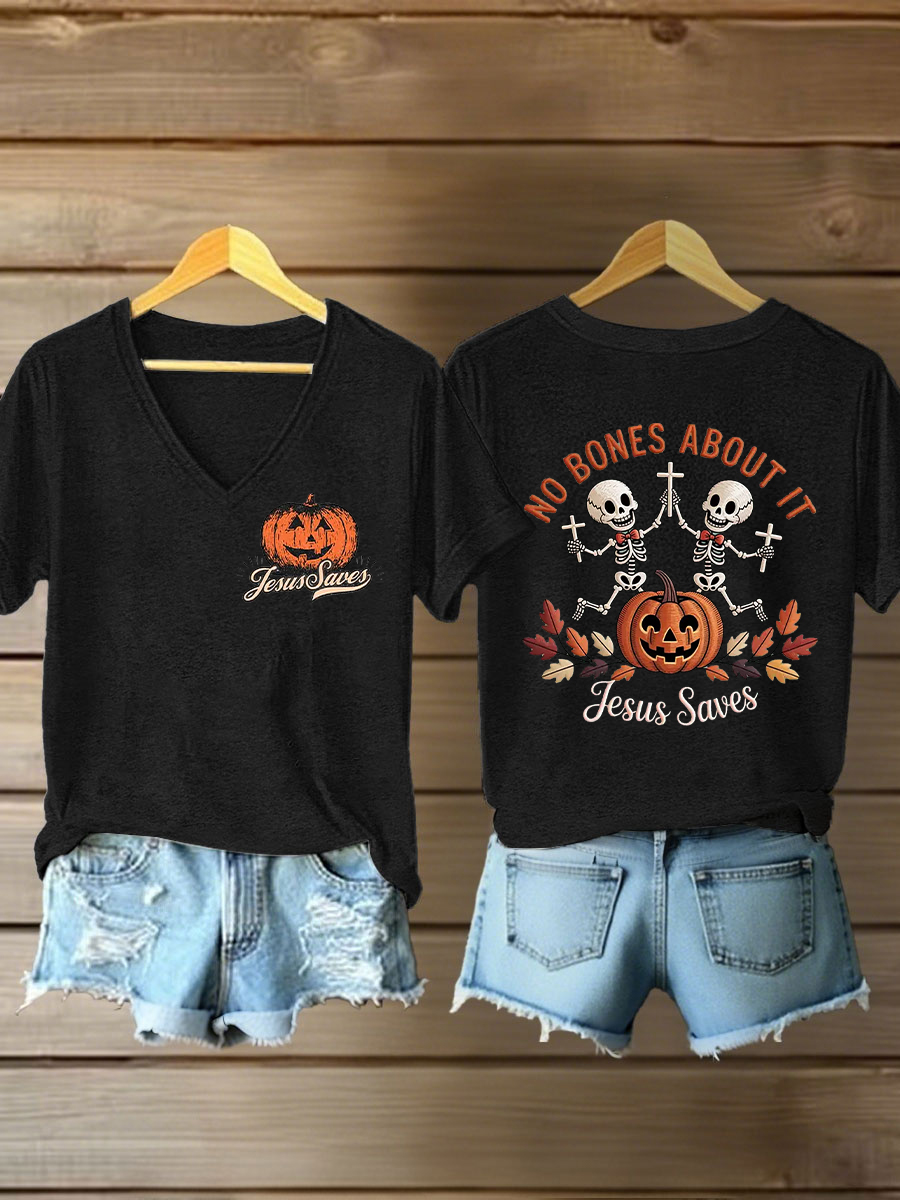 Women's Halloween Christian No Bones About It Jesus Saves Short Sleeve T-Shirt