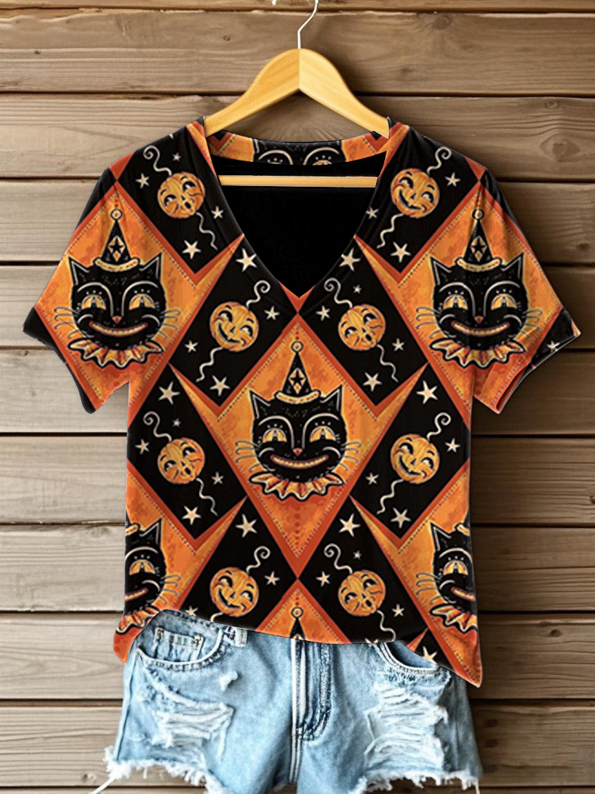 Women's Halloween Printed V-neck T-shirt