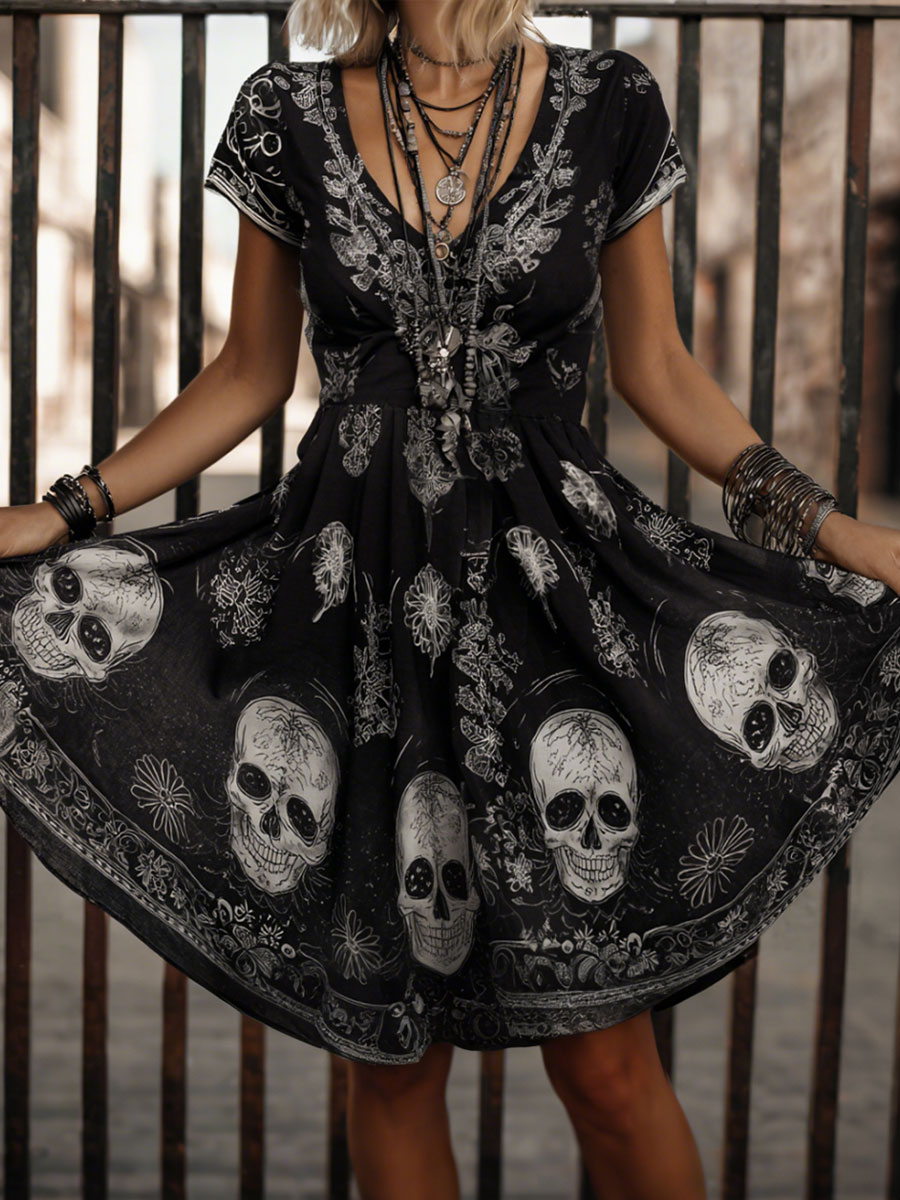 Women's Halloween Skull Casual Dress