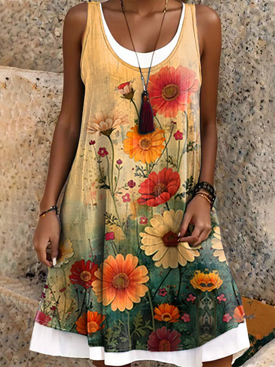 Women's Hippie Art Floral Print Tank Dress