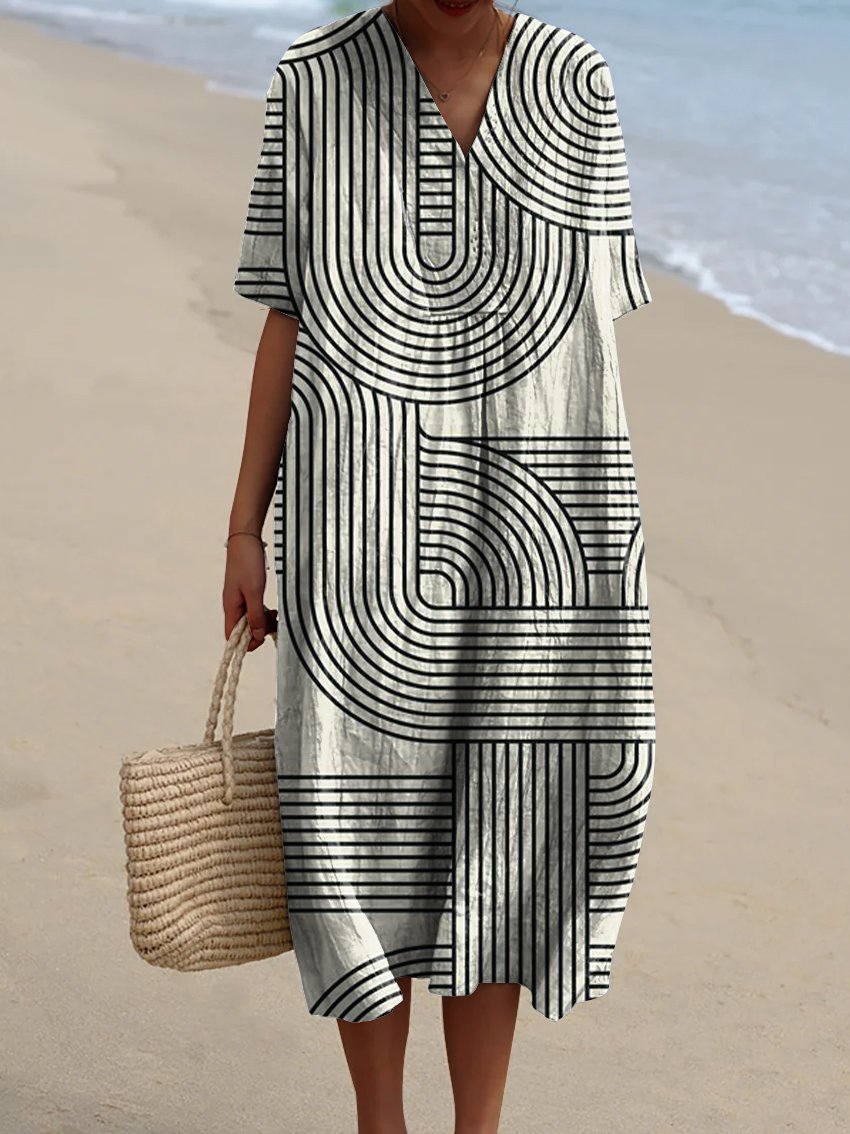Women's Irregular Stripe Pattern Design Watercolor Splash Fluid Art Print Flowy Dress