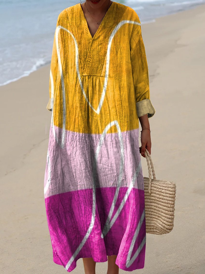 Women's Pink Orange Yellow Art Abstract Print Flowy Dress