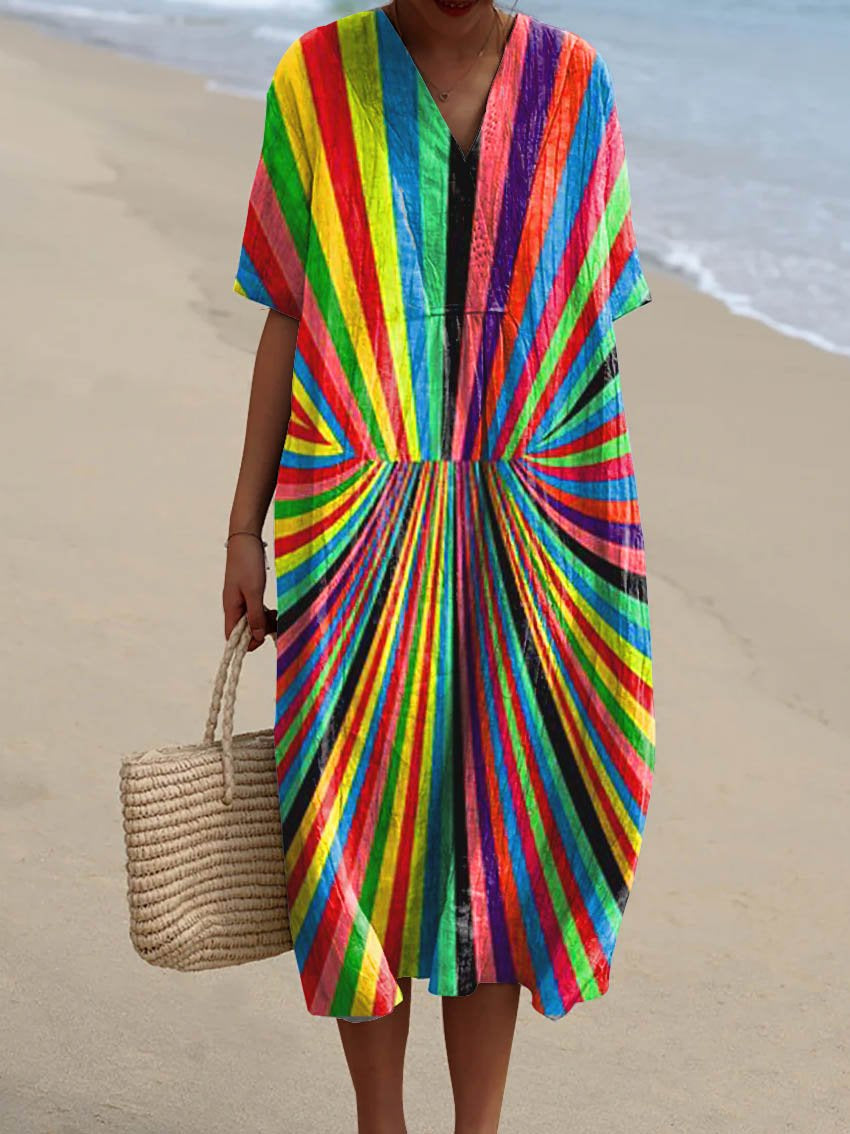 Women's Rainbow Stripes Abstract Geometric Art Print Casual Flowy Dress