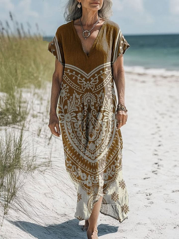Women's Retro Pattern Art Print Pocket Cotton Dress