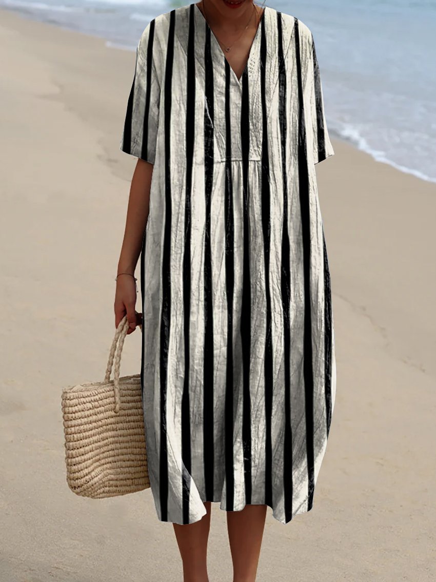Women's Simple Vertical Stripes Watercolor Splash Fluid Art Print Flowy Dress