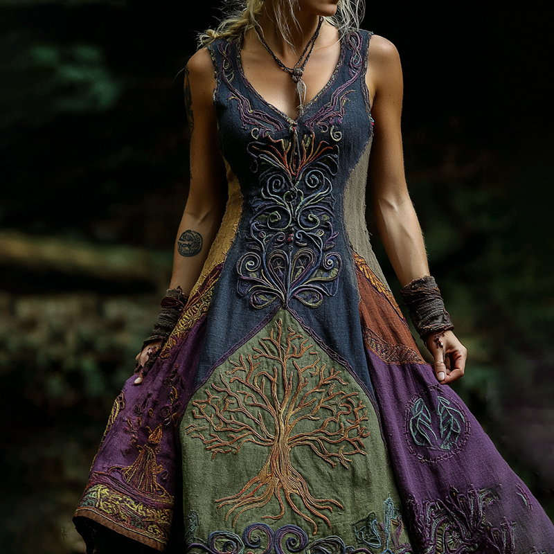 Women's Viking Vintage Celtic Gradient Patchwork Art Maxi Dress