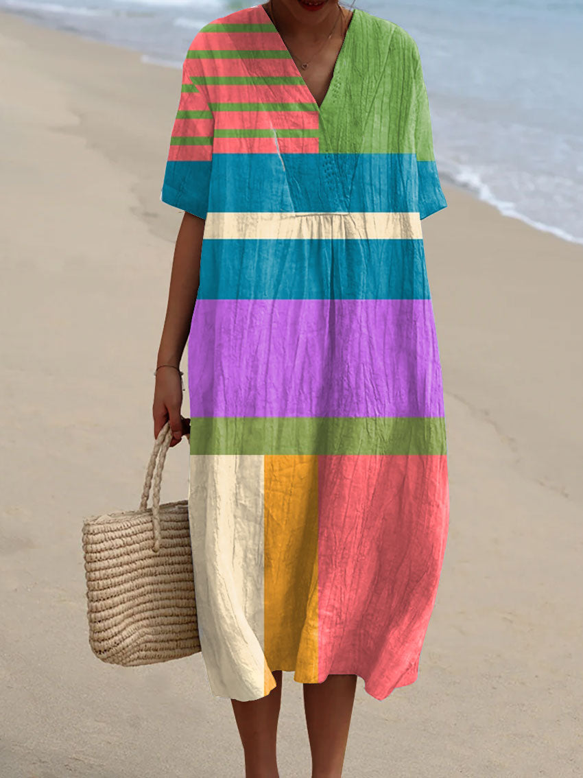 Women's Vintage Abstract Geometric Art Print Flowy Dress