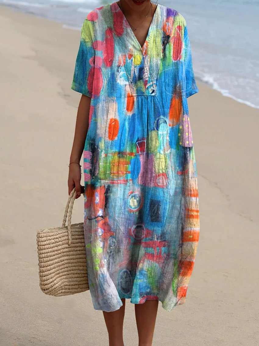 Women's Vintage Abstract Painting Art Print Flowy Dress