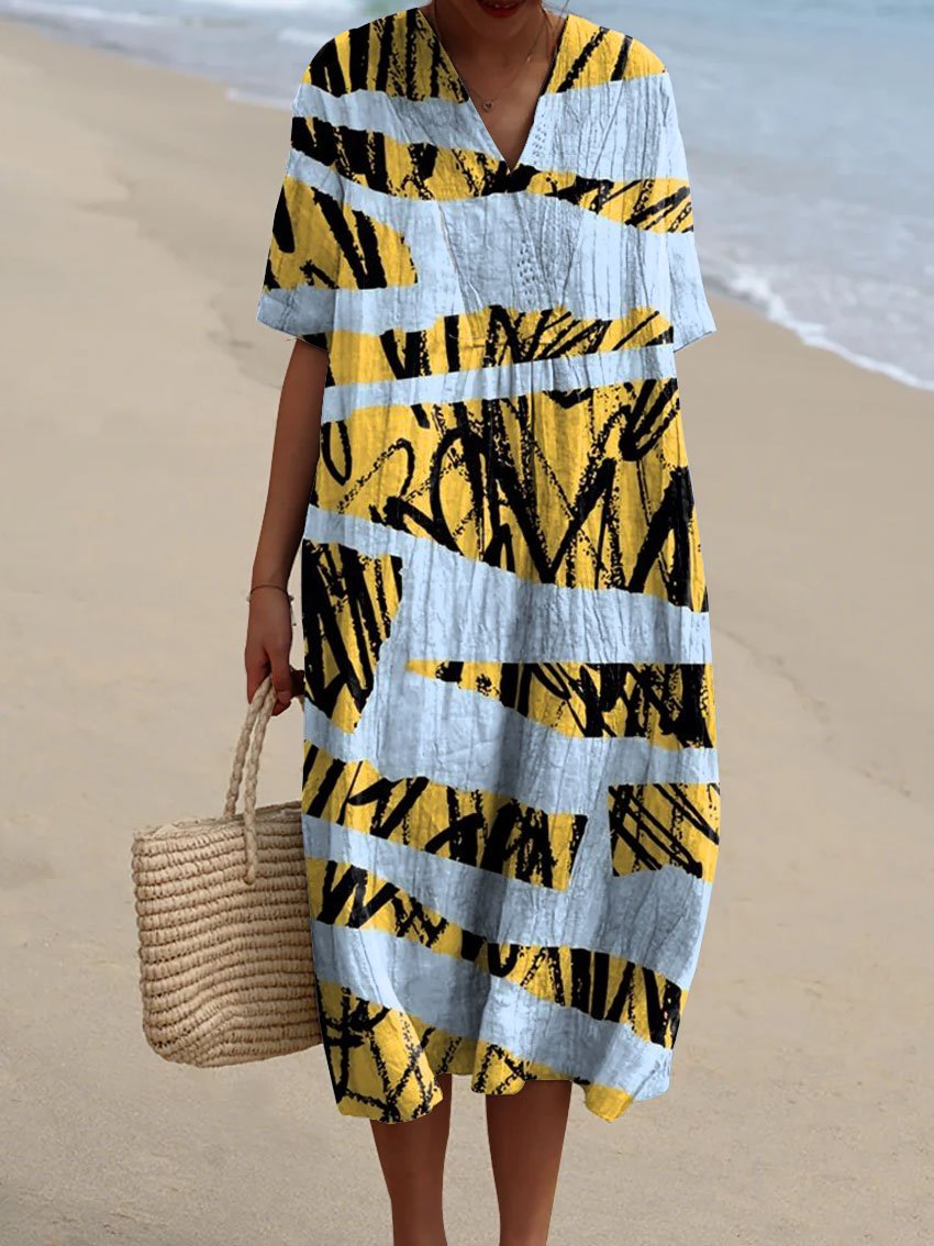 Women's Vintage Abstract Pattern Art Print Flowy Dress