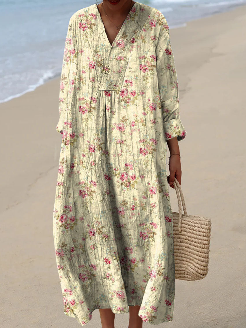 Women's Vintage Lovely Floral Art Print Cotton Dress