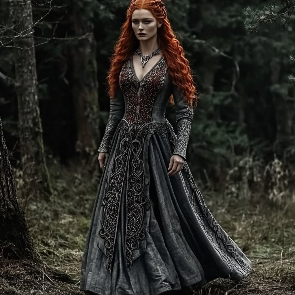 Women's Vintage Viking Celtic Knot Art Long Sleeve V Neck Dress