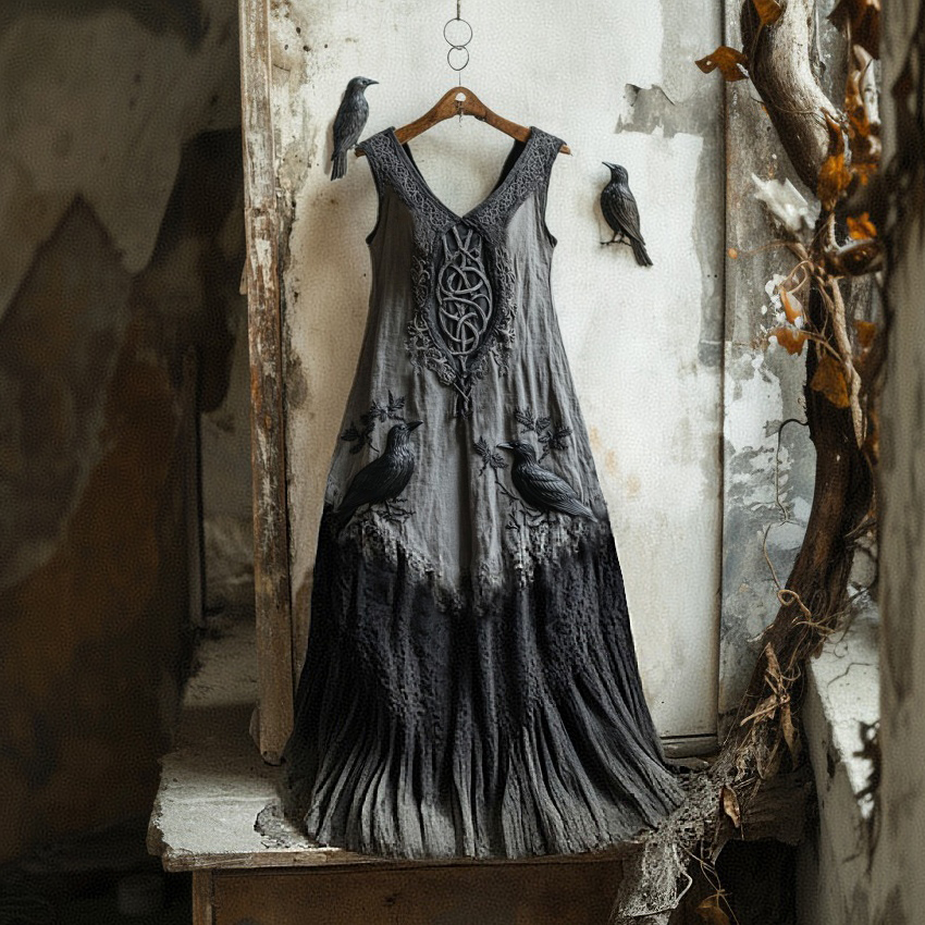 Women's Vintage Viking Runes Celtic Gradient Art Linen Dress