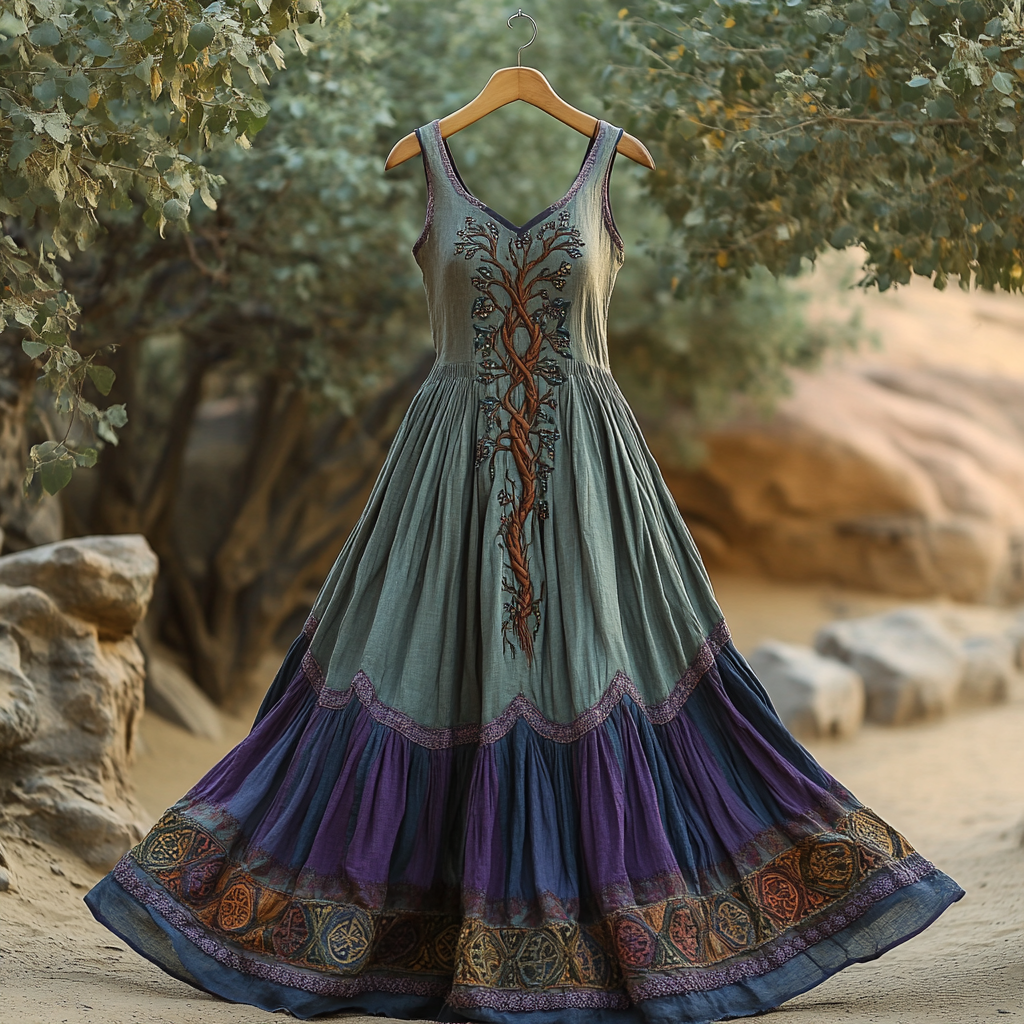 Women's Vintage Viking Tree Of Life Celtic Knot Patchwork Art Print Maxi Dress